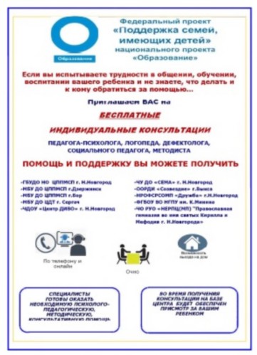 Информация об организациях, оказывающих консультационные услуги в рамках проекта «Поддержка семей, имеющих детей»